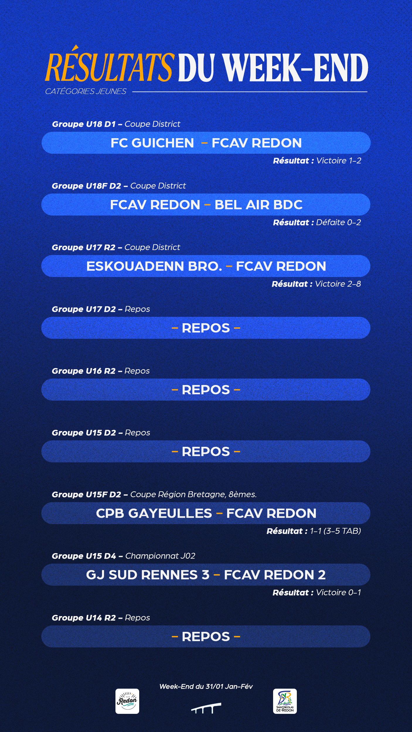 Venir en survêtement du club au RDV/ Tenue de footballeur complète dans le sac/ Affaire de rechange et de douche/ Gourde. Obligatoire !